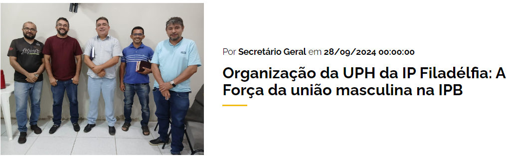 Espaço ideal para você ficar por dentro de tudo o que está acontecendo em nossas comunidades. Aqui, você encontrará atualizações sobre eventos, encontros, congressos e atividades que estão sendo realizados por homens presbiterianos em todo o Brasil.